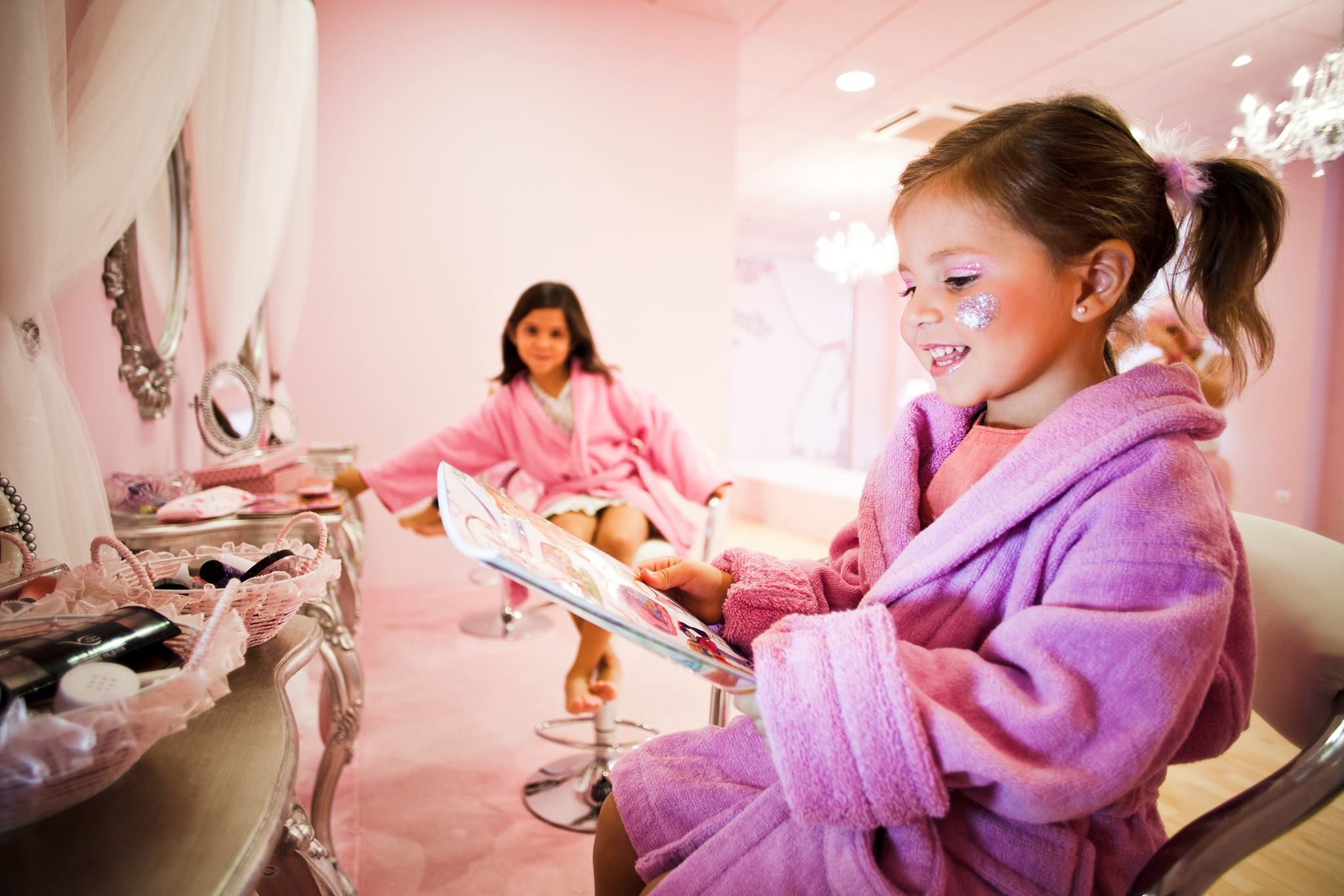Experiência de spa infantil com roupões, cuidados de beleza e muitas fotos com as amigas.